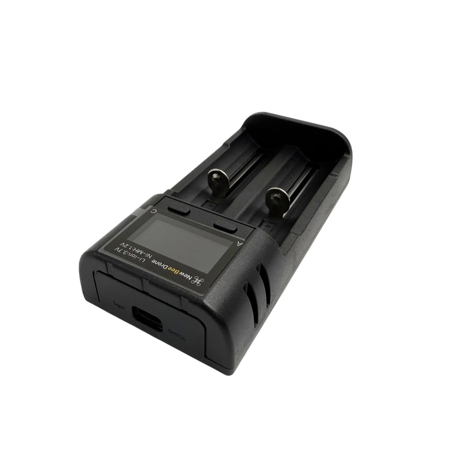 FIRSTLEGENDS at checkout.The NewBeeDrone Nectar Injector Cylindro Charger is a smart, dual-slot battery charger engineered for FPV pilots, outdoor enthusiasts, and DIY tech users who rely on 18650, 21700, and other lithium-ion or NiMH/NiCD cells. With its compact design, USB-C input, and intelligent charge management, this charger is the perfect companion whether you’re on the road or at the bench.